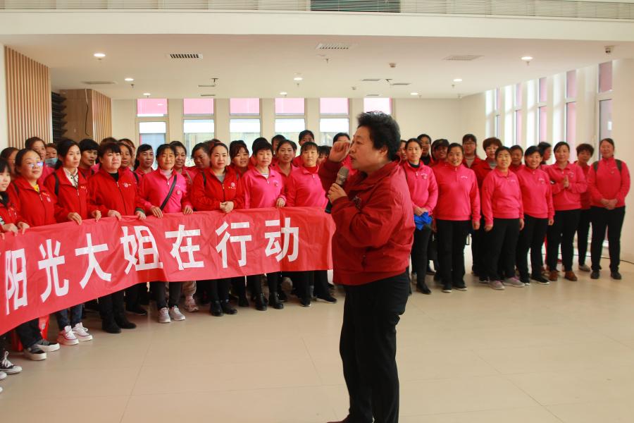 ????早6:30分,從四面八方趕來的大姐在德州婦女兒童活動中心東門集合,乘車赴濟陽家政集聚示范區(qū)做義工。在大姐們嘹亮的“學(xué)習(xí)雷鋒好榜樣”歌聲中,滿載120多名大姐的客車駛向濟陽。?