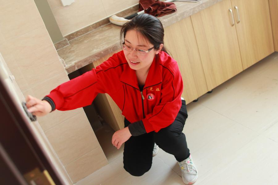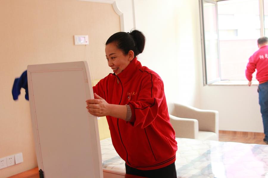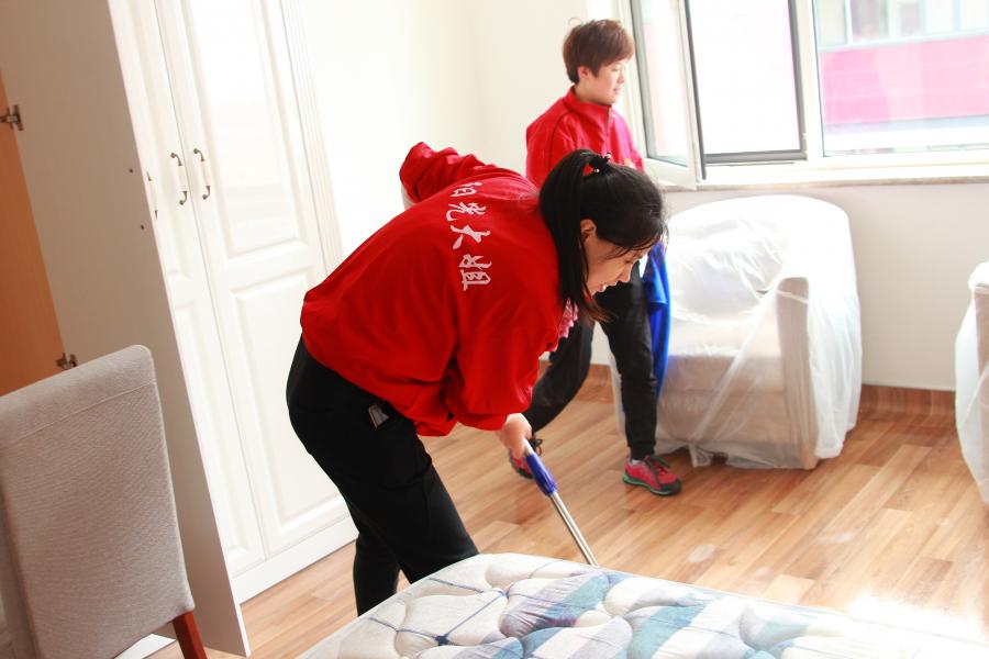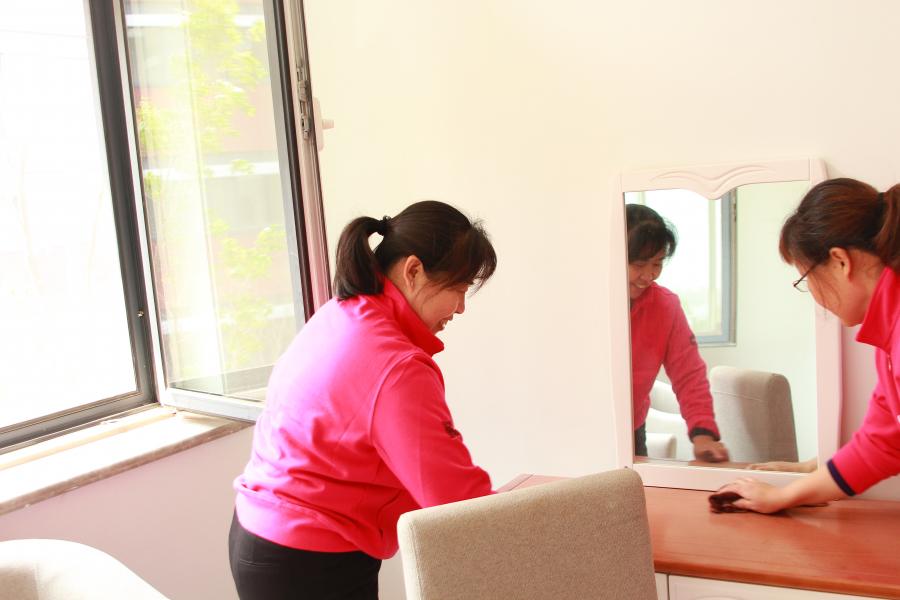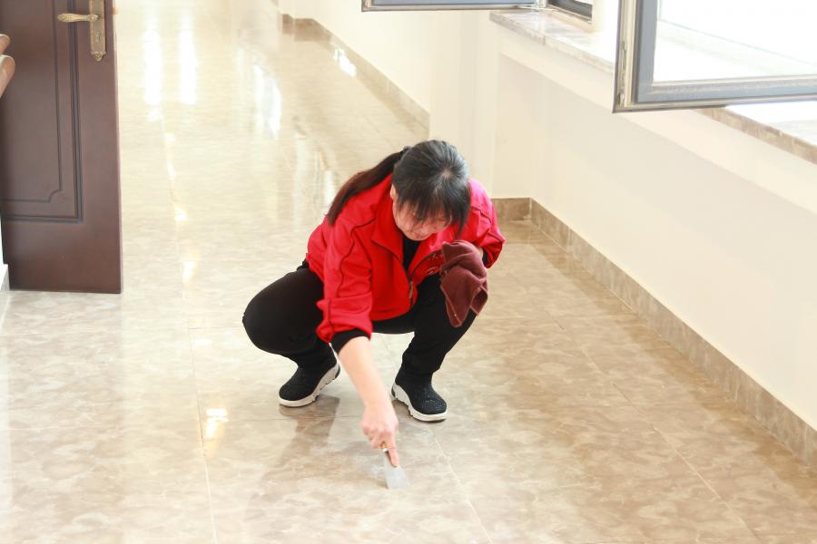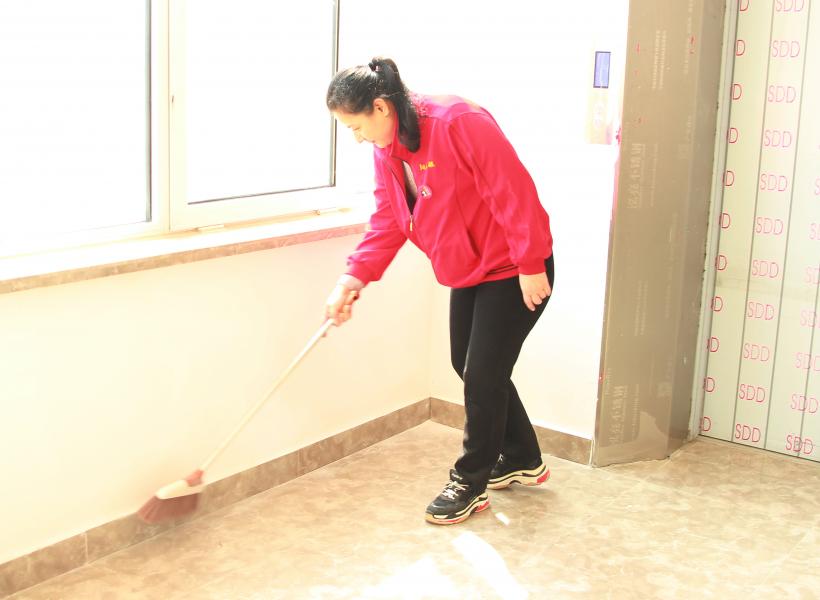 ??經(jīng)過大姐們一天的努力,明亮的玻璃,光可鑒人的地板,一塵不染的家具,處處煥然一新??吹竭@些大姐們擦擦額頭的汗水會心的笑了。