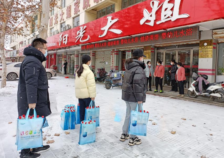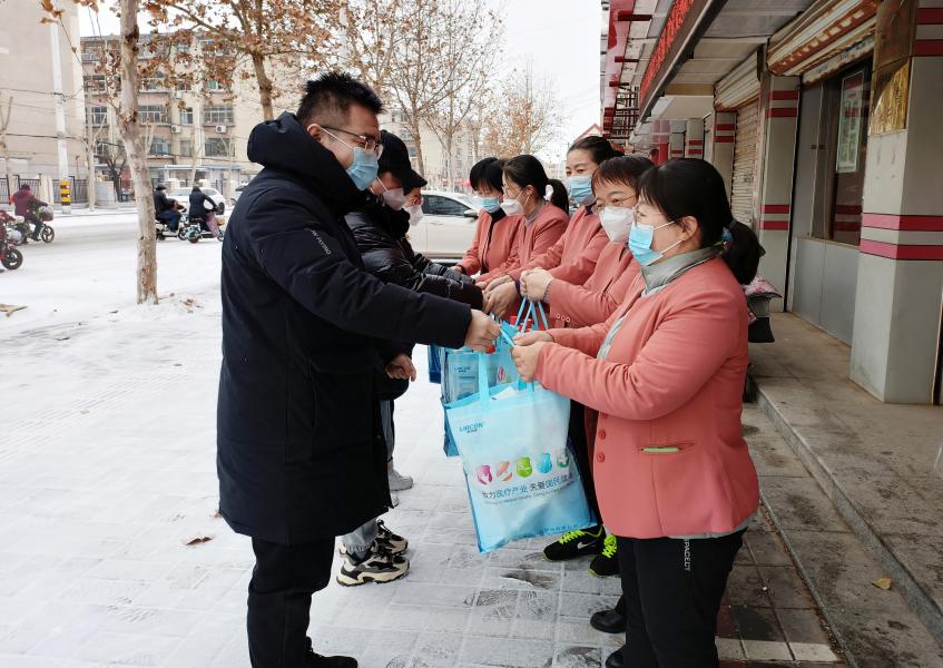 ? ? ? ?1月14日,農(nóng)歷小年,小雪如約而至,德城區(qū)婦聯(lián)舉行“巾幗送暖”活動(dòng),工作人員冒雪為我單位送來(lái)了防疫愛(ài)心大禮包,并感謝我單位在疫情防控期間的辛苦付出以及在促進(jìn)女性就業(yè)、推動(dòng)?jì)D女事業(yè)發(fā)展中作出的積極貢獻(xiàn),同時(shí)叮囑大家在歡度春節(jié)的同時(shí)也不要忘記做好自身防護(hù)。