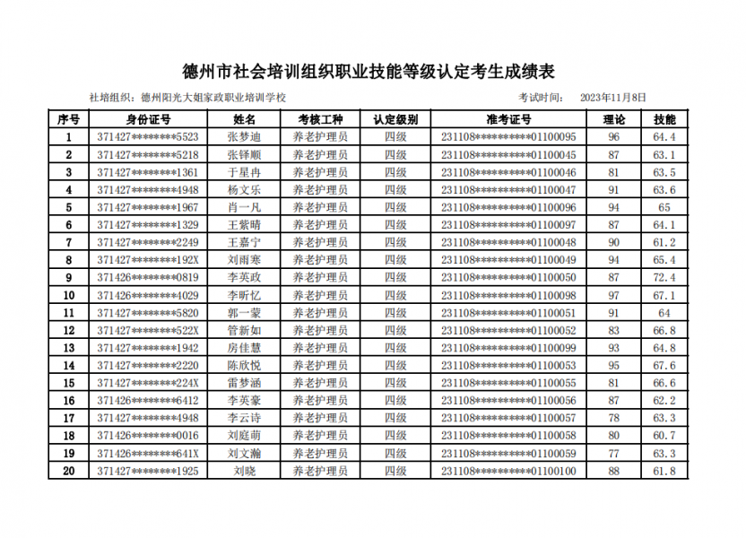 根據(jù)《山東省技能人才社會培訓(xùn)組織評價考核工作規(guī)則》規(guī)定和要求 ,通過考核,現(xiàn)將我校20231108期社會職業(yè)技能等級認(rèn)定成績予以公示,接受社會監(jiān)督。公示期5日,自2023年11月18日至2023年11月24日。公示期間如有異議,請撥打監(jiān)督電話0534-2258869。??