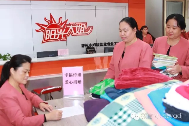 2016年10月10日晚,德州陽(yáng)光大姐舉行慈善分會(huì)成立揭牌儀式。市民政局黨組副書記、市慈善總會(huì)常務(wù)副會(huì)長(zhǎng)、市義工協(xié)會(huì)會(huì)長(zhǎng)周成玉、市婦聯(lián)發(fā)展部部長(zhǎng)何海燕出席儀式。工作人員及服務(wù)員200余人參加了“慈善一日捐”活動(dòng)。