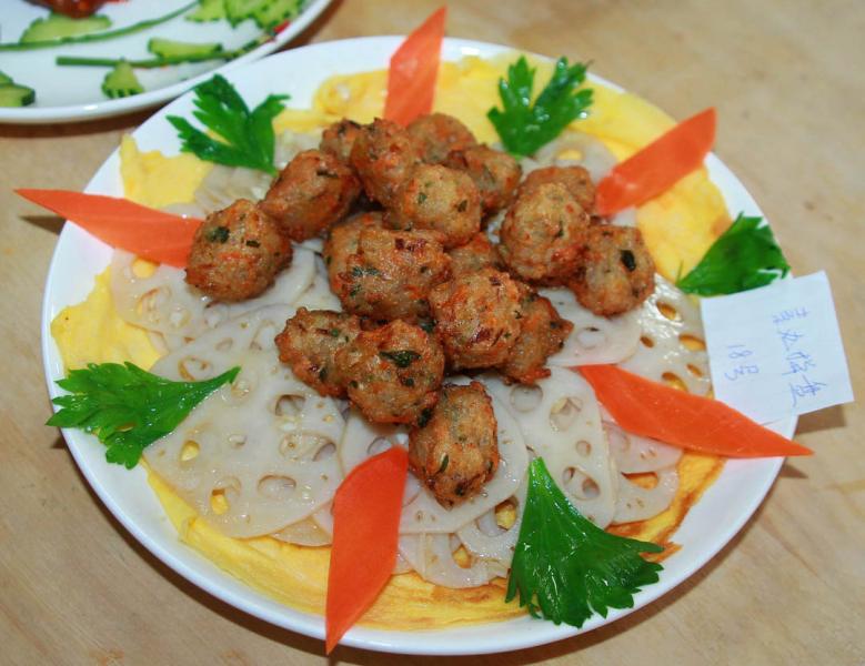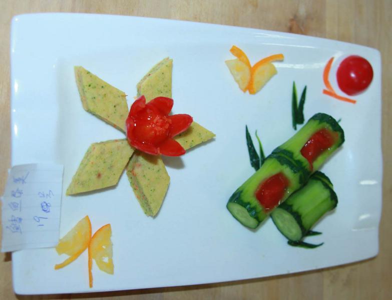 上午8點(diǎn)30分比賽正式拉開帷幕,比賽哨聲一響,大姐們互不相讓,紛紛亮出絕活一決高下。灶臺(tái)前蒸、炸、煎、炒、燉,展示了她們不凡的巧手烹飪技藝,經(jīng)過她們精心烹調(diào)與制作,一道道精美的菜肴呈現(xiàn)在評委和觀眾的面前,選手們紛紛為自己的作品取了別致的名字,如:孔雀開屏、蝦五彩骨頭湯、金槍魚雞蛋盅等,每道菜都如同一個(gè)工藝品,不僅色香味俱全,而且在滿口留香的同時(shí)還做到了營養(yǎng)搭配均衡。來自市職業(yè)資格鑒定中心的考評員們現(xiàn)場點(diǎn)評,分別從菜品的搭配、創(chuàng)意取名、拼盤設(shè)計(jì),以及菜品的色、香、味、意、形進(jìn)行打分。最終蔡紅莉、周艷霞、韓俊蘭、路秋菊、肖秀蘭五位大姐分獲最佳創(chuàng)新獎(jiǎng)、最佳營養(yǎng)搭配獎(jiǎng)、最佳視覺獎(jiǎng)、最佳味道獎(jiǎng)、最高級技藝獎(jiǎng)五個(gè)獎(jiǎng)項(xiàng)。