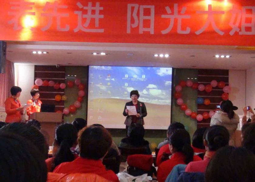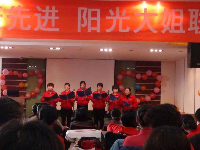 ? 2012.3.3下午我公司舉行“慶三八 表先進 陽光大姐聯(lián)誼會”,近二百多名服務(wù)員參加活動。會上表彰了二十名優(yōu)秀服務(wù)員,大姐們通過自編自演的節(jié)目來歡慶自己的節(jié)日。