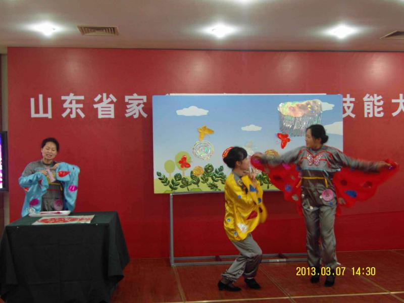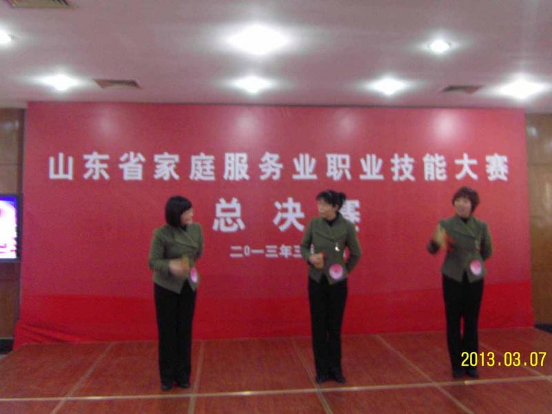 ? ? 山東省家庭服務(wù)業(yè)職業(yè)技能大賽總決賽于3月7日在濟(jì)南舉行,經(jīng)過(guò)理論知識(shí)考試、實(shí)際操作比賽、才藝技能展示等環(huán)節(jié)的競(jìng)賽,我公司派出的2支代表隊(duì)分別獲得二、三等獎(jiǎng),選手被授予“山東省家庭服務(wù)能手”榮譽(yù)稱號(hào)。?大姐們展現(xiàn)了家庭服務(wù)員精湛的職業(yè)技能、良好的精神狀態(tài)、和諧的團(tuán)隊(duì)精神,為公司爭(zhēng)得了榮譽(yù)。